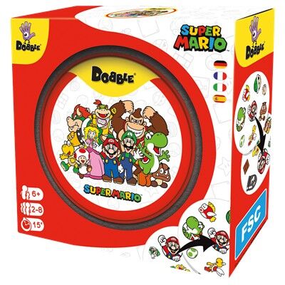 Sencillo, rápido y divertido: ¡Dobble es el juego definitivo de observación y velocidad! Encuentra antes que nadie el único símbolo idéntico entre 2 cartas para ganar una carta o librarte de ella. Encuentra los personajes y objetos más emblemáticos del famoso videojuego Super Mario en 55 cartas ilustradas.