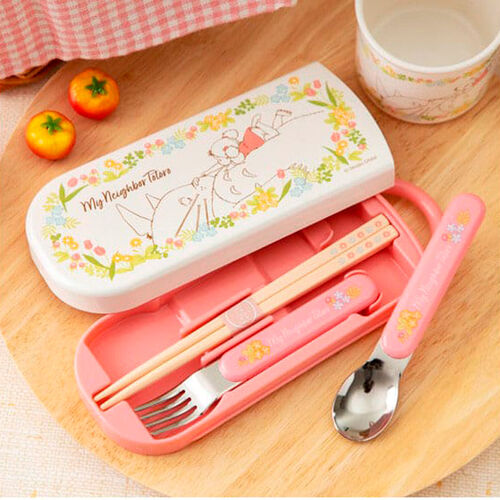Disfruta tus comidas con estilo de Studio Ghibli con este adorable set de palillos, cuchara y tenedor de Mi Vecino Totoro, con diseño de Mei y Totoro.