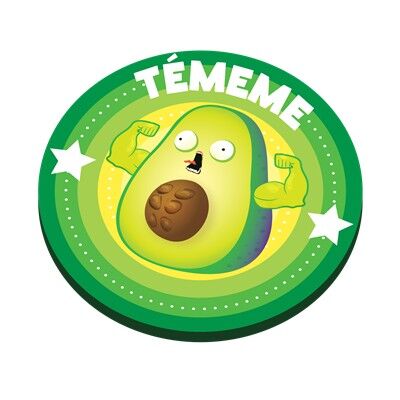 20 cartas, 2 aguacates, 6 fichas de moratón de aguacate, 1 insignia Témeme.